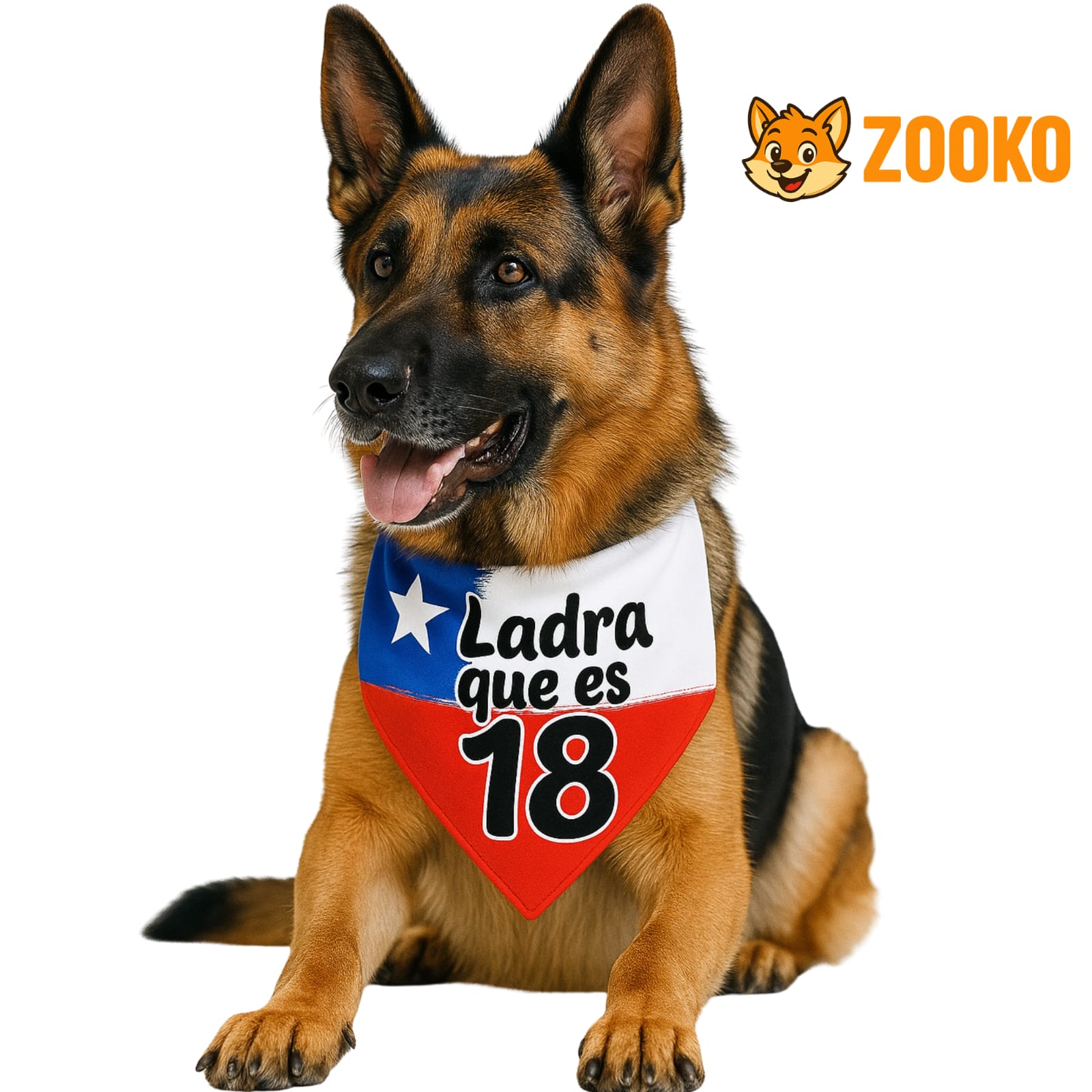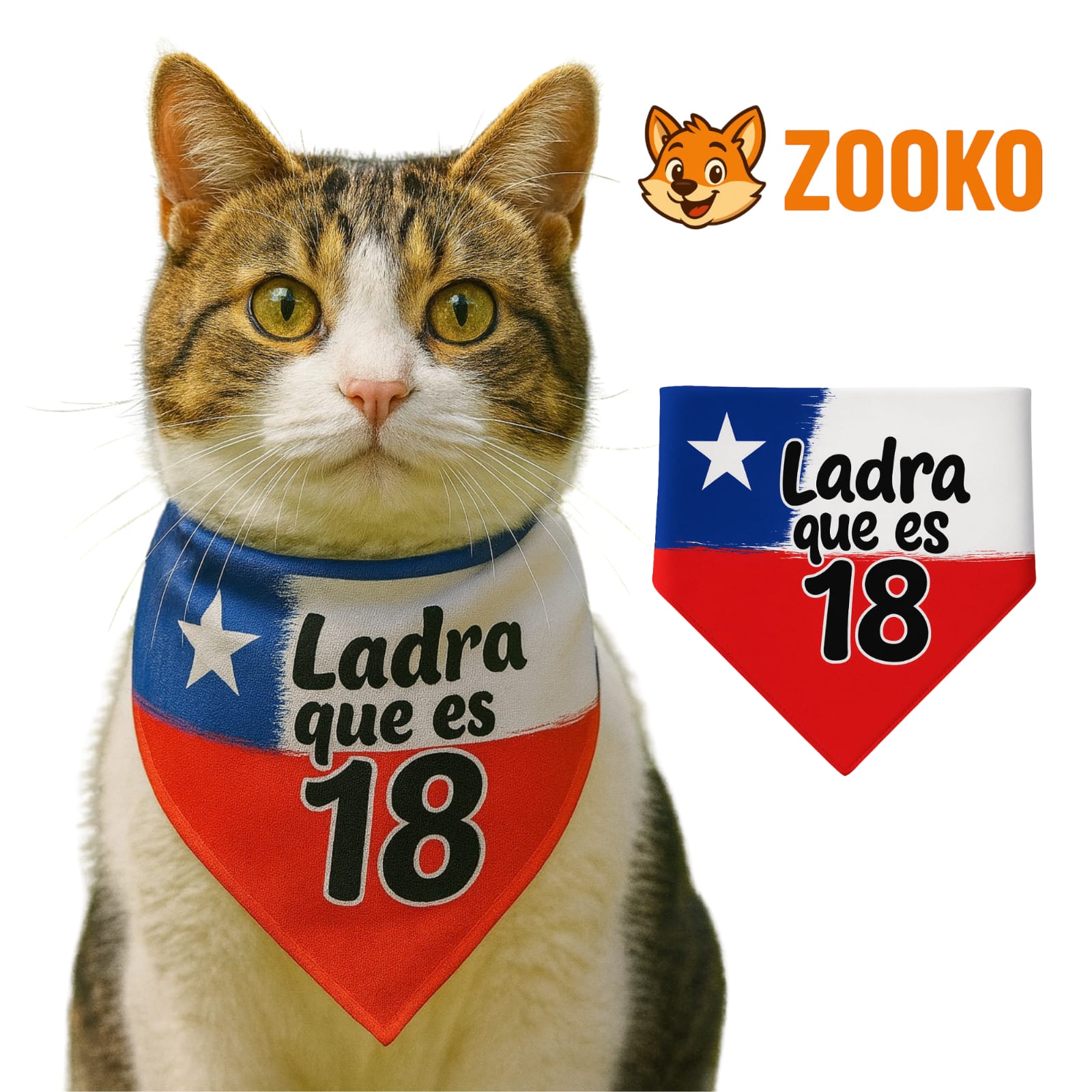 Celebra las Fiestas Patrias junto a tu perro o gato con el Collar Bandana ZOOKO edición “Ladra que es 18”. Un accesorio diseñado exclusivamente por nuestra tienda para que tu mascota luzca con estilo, humor y orgullo chileno durante este 18 de septiembre.