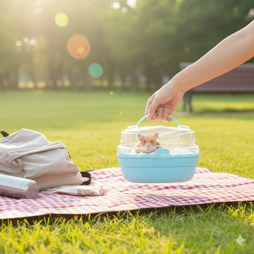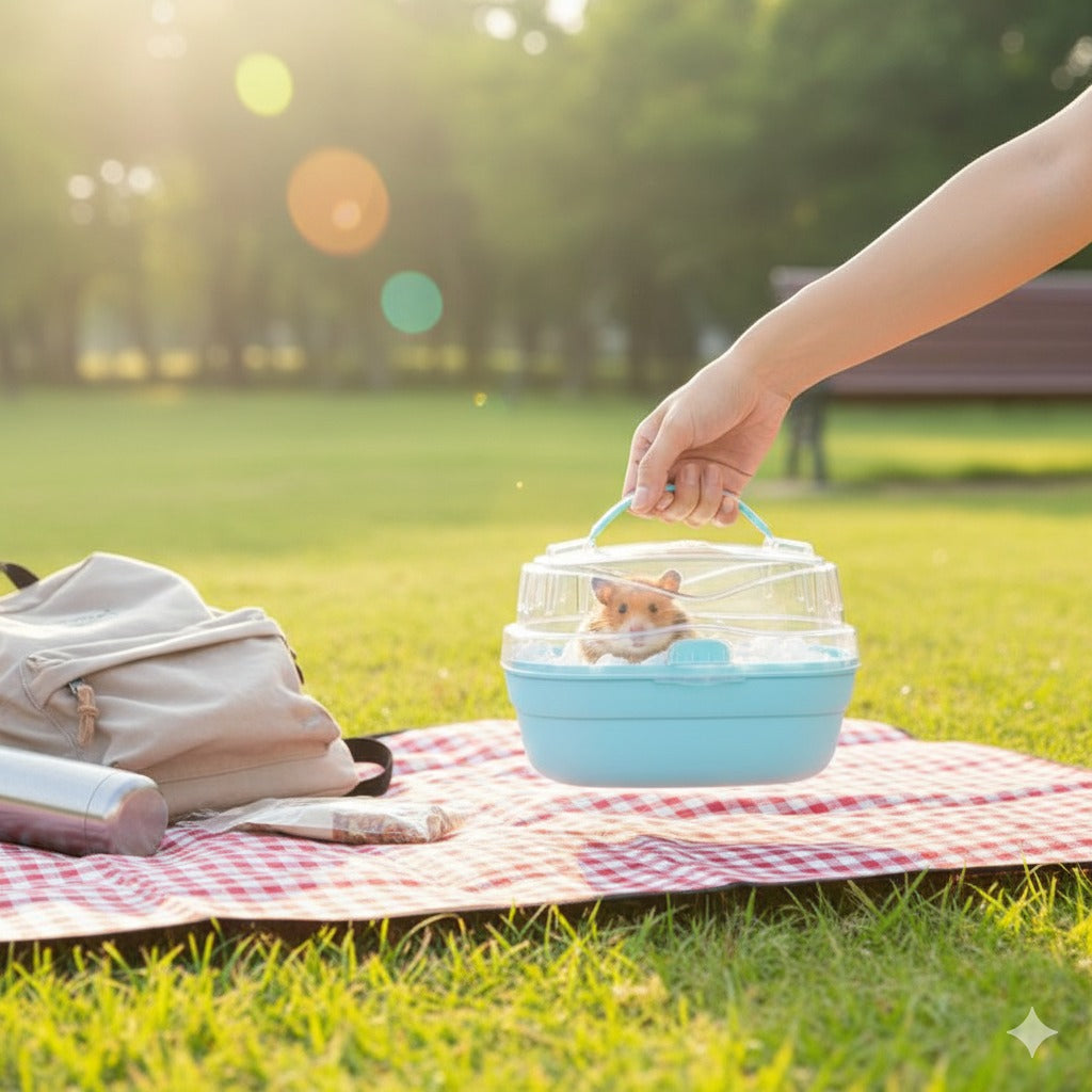 Jaula Transportadora de Viaje para Hámster, Cuy, Erizo y Roedores Pequeños – Caja de Paseo Seguro y Portátil