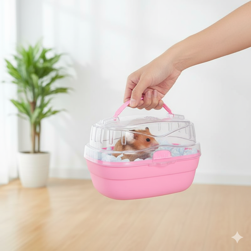 Lleva a tu pequeña mascota a todas partes con comodidad y seguridad con nuestra Jaula Transportadora para Hámster y roedores pequeños. Diseñada para ofrecer un espacio seguro, ventilado y práctico, es ideal para viajes, paseos, veterinaria o traslados dentro del hogar.