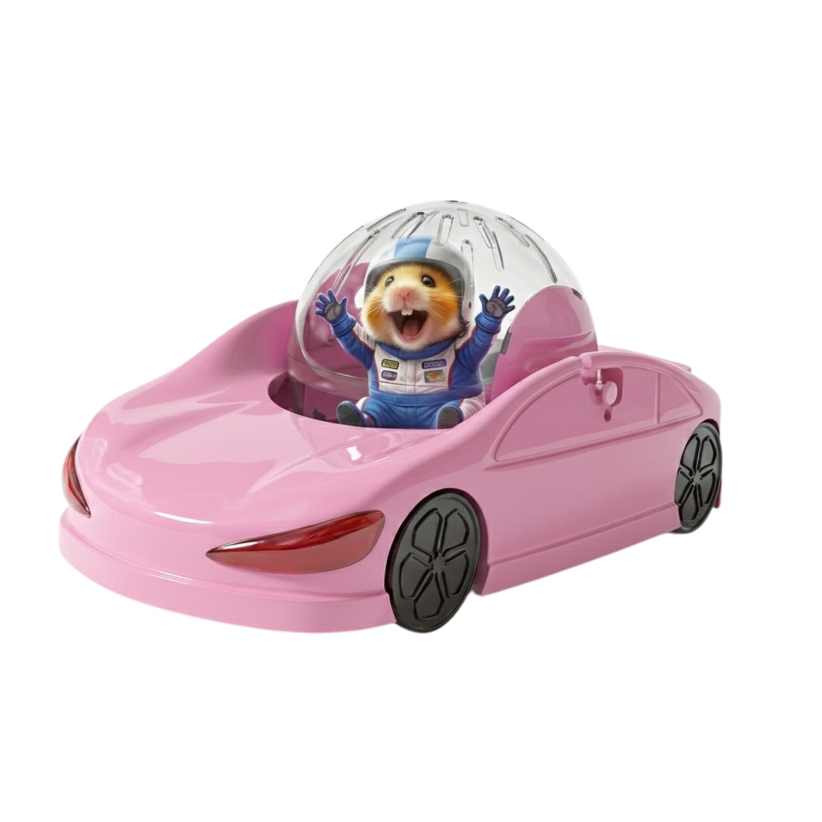 Este innovador juguete cuenta con una pelota/rueda transparente que se monta sobre un auto deportivo, permitiendo que el hámster, ratón o erizo pequeño haga ejercicio mientras el auto avanza con sus movimientos. Es ideal para enriquecer el ambiente de tu mascota y fomentar actividad física constante sin riesgos.