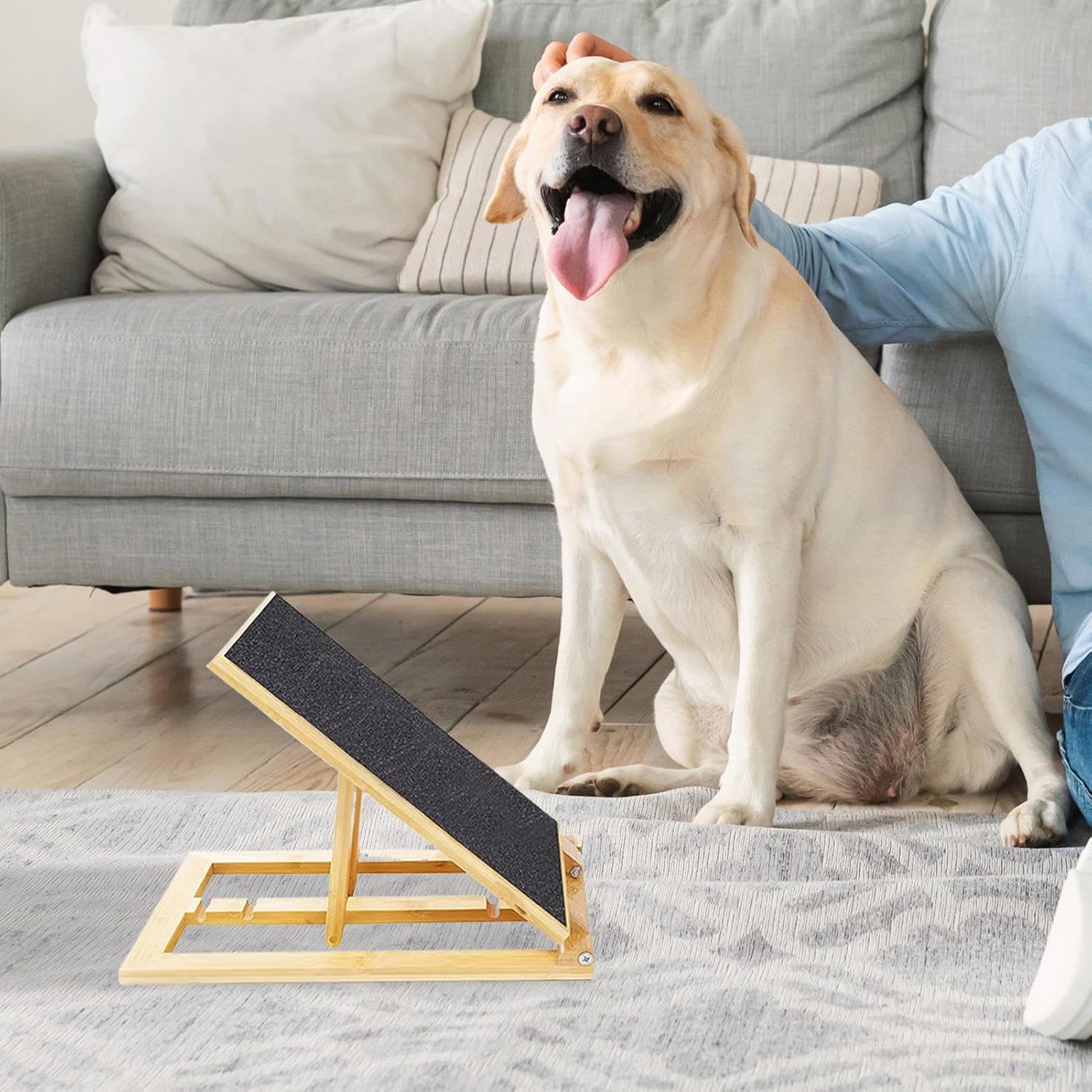 La superficie con tracción optimizada favorece un movimiento suave y seguro, cuidando las articulaciones de tu mascota. Funciona como escalón ergonómico que ayuda en ejercicios de movilidad y como rampa para un limado natural sin ansiedad.